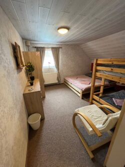2. Pokoj: Čtyřlůžkový (manželská postel, palanda), vlastní koupelna s WC