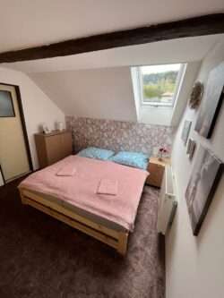 4. Pokoj: Dvoulůžkový (manželská postel), vlastní koupelna s malou vanou a WC