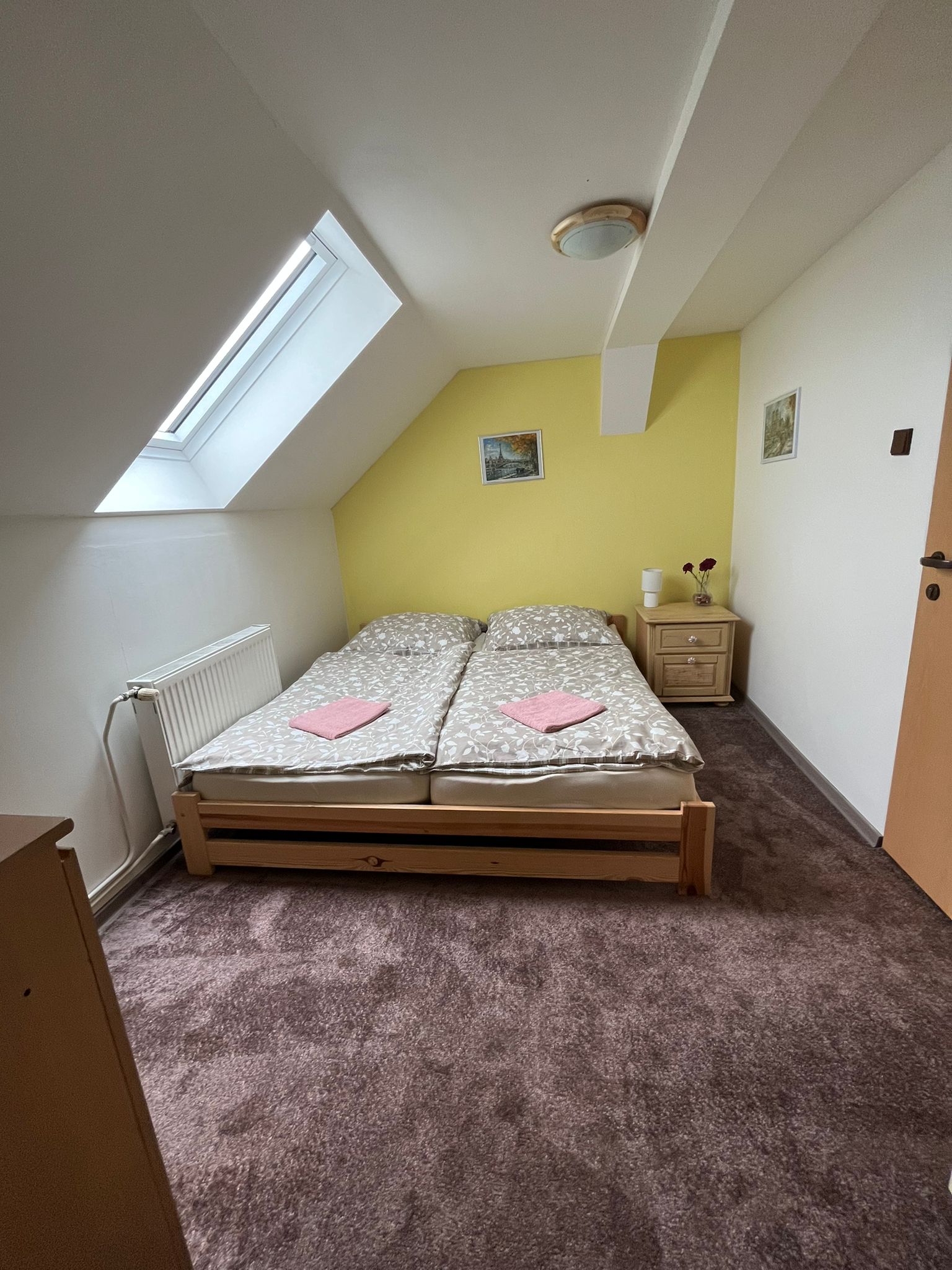 1. Pokoj: Dvoulůžkový (manželská postel), vlastní koupelna s WC